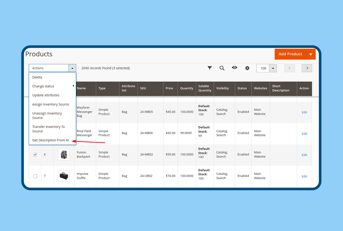 - With the help of mass action, the admin can add short descriptions for multiple products at once.