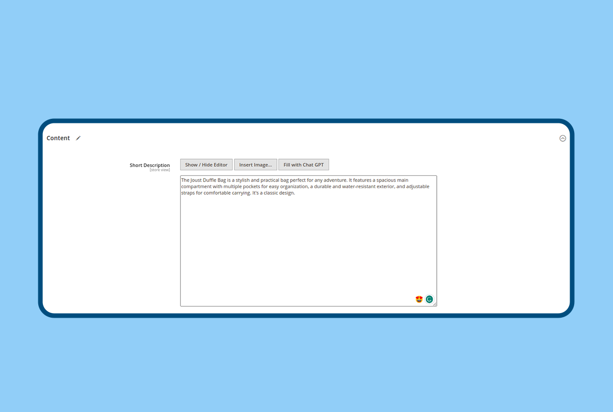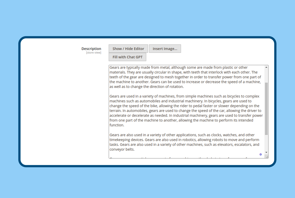 Artificial Intelligence is becoming part of e-commerce stores to simplify things and provide faster solutions. It also provides a feature where the store admin can perform actions to create content for bulk products. The content gets created for long and short descriptions according to the user's requirements.