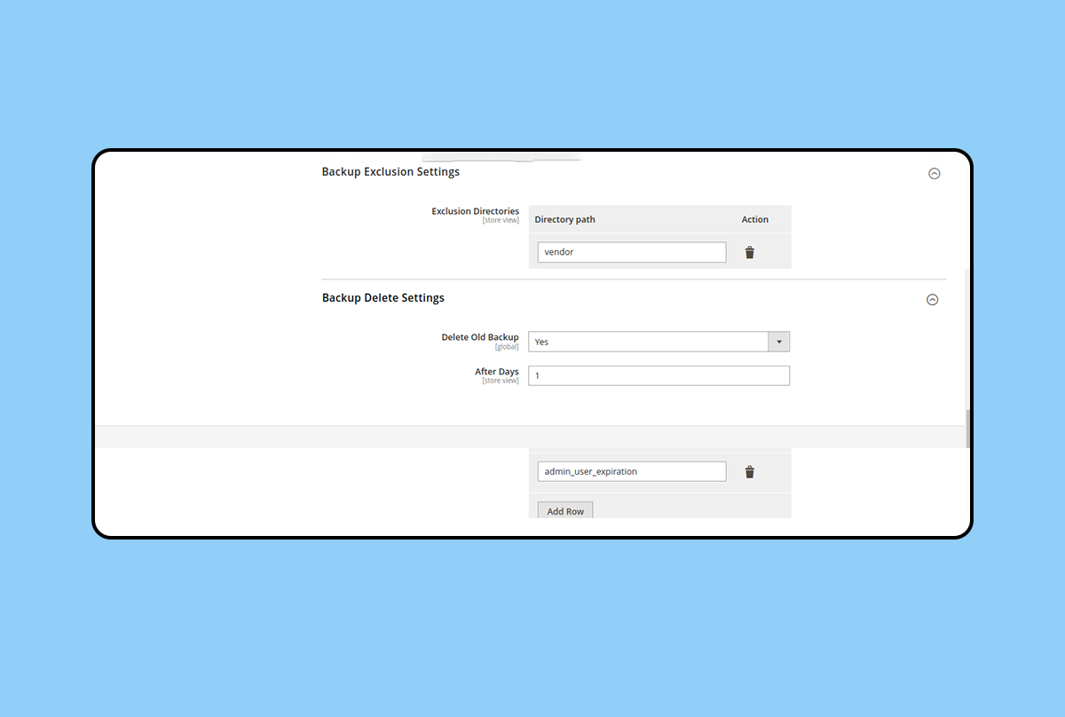 - The administrator can enable the option to delete old backups in the Magento 2 store using two different criteria: 'Days after' and 'After Uploading to Cloud Storage'
