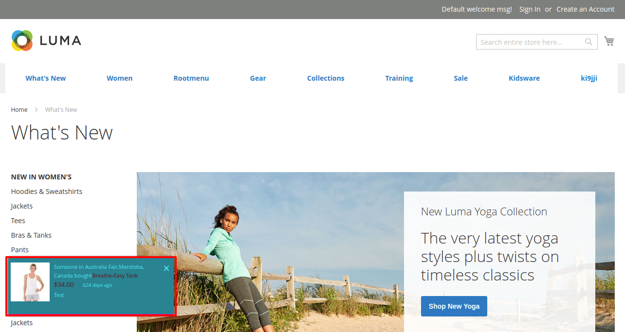 Admin can easily enable or disable the notification in front-end. When the user loads a website for the first time, a notification appears containing product name and image. Admin can set additional information also like city, region, country, product link, order date, price and custom text.