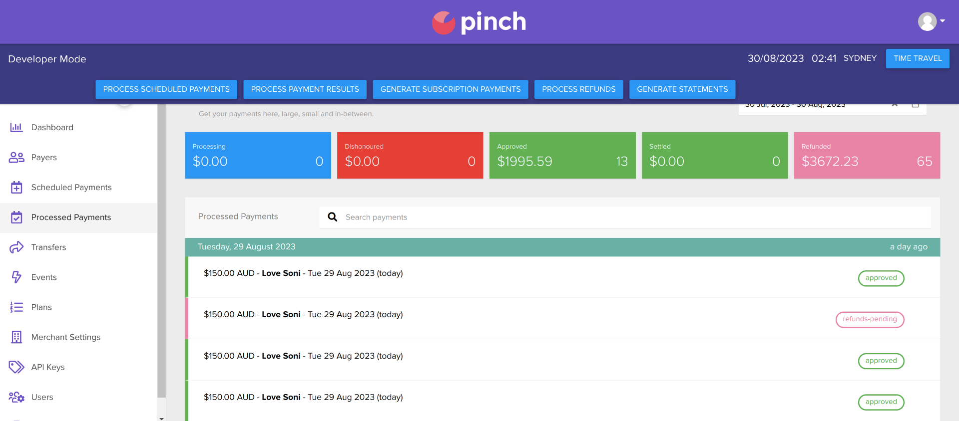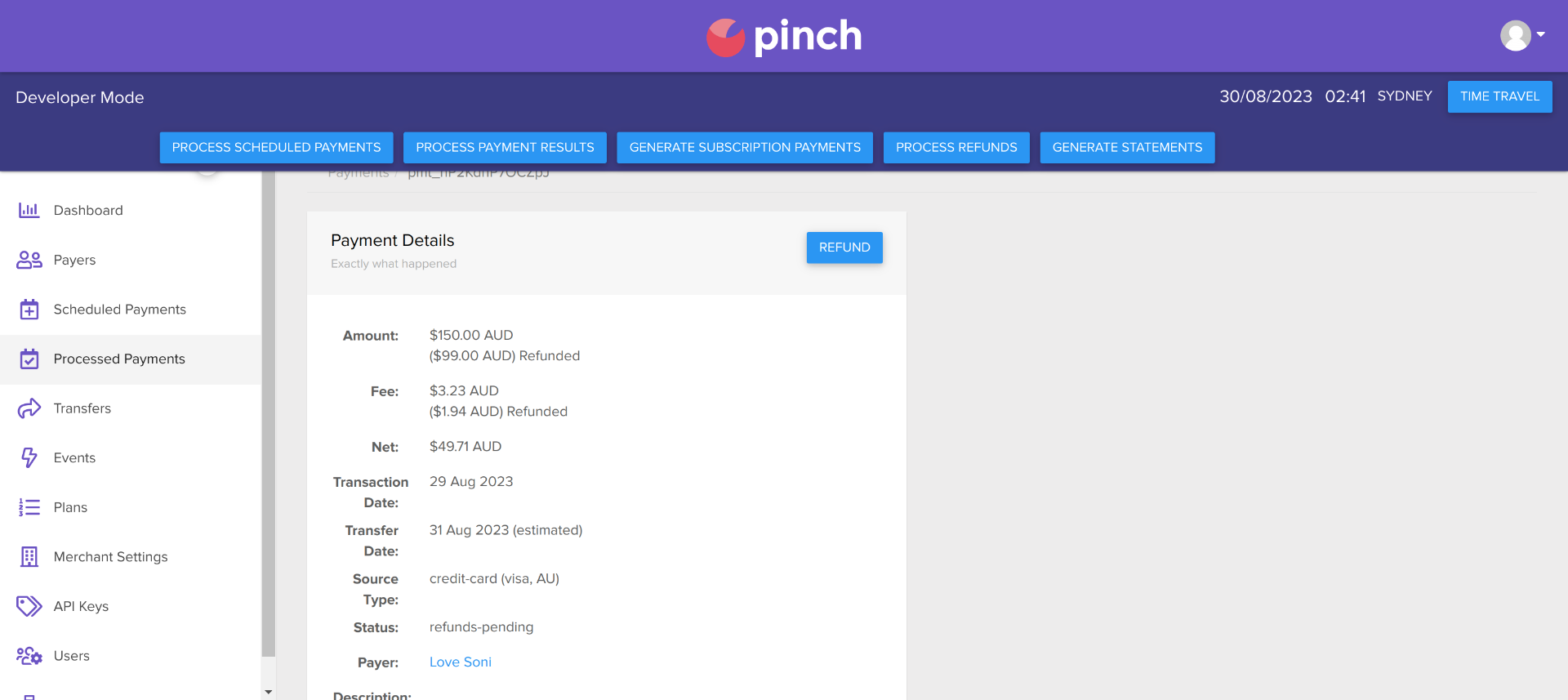 2) How to see refund payment update visit pinch dashboard > Processed payment > select your payment.