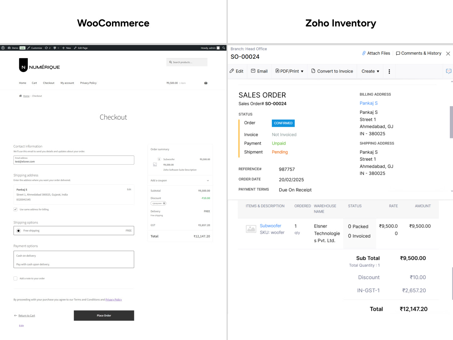 → Two-way product updates between WooCommerce and Zoho Inventory – Changes made in either platform automatically appear in the other one.