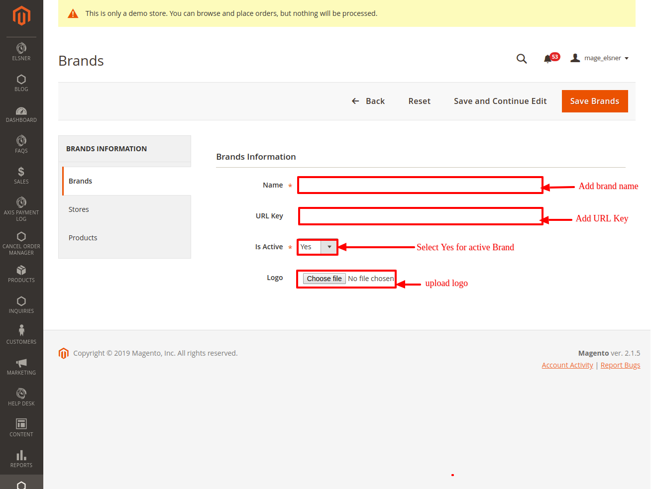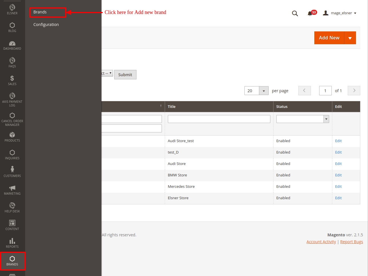 - Admin can edit such details of a brand as name, logo, banner, description.