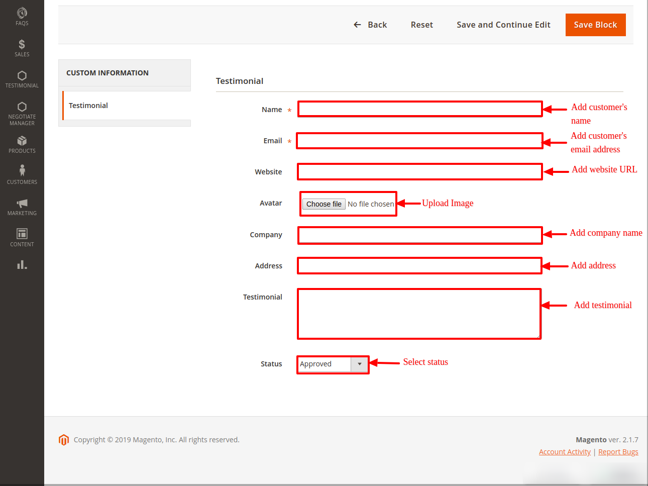 Testimonial - Add Testimonial Information