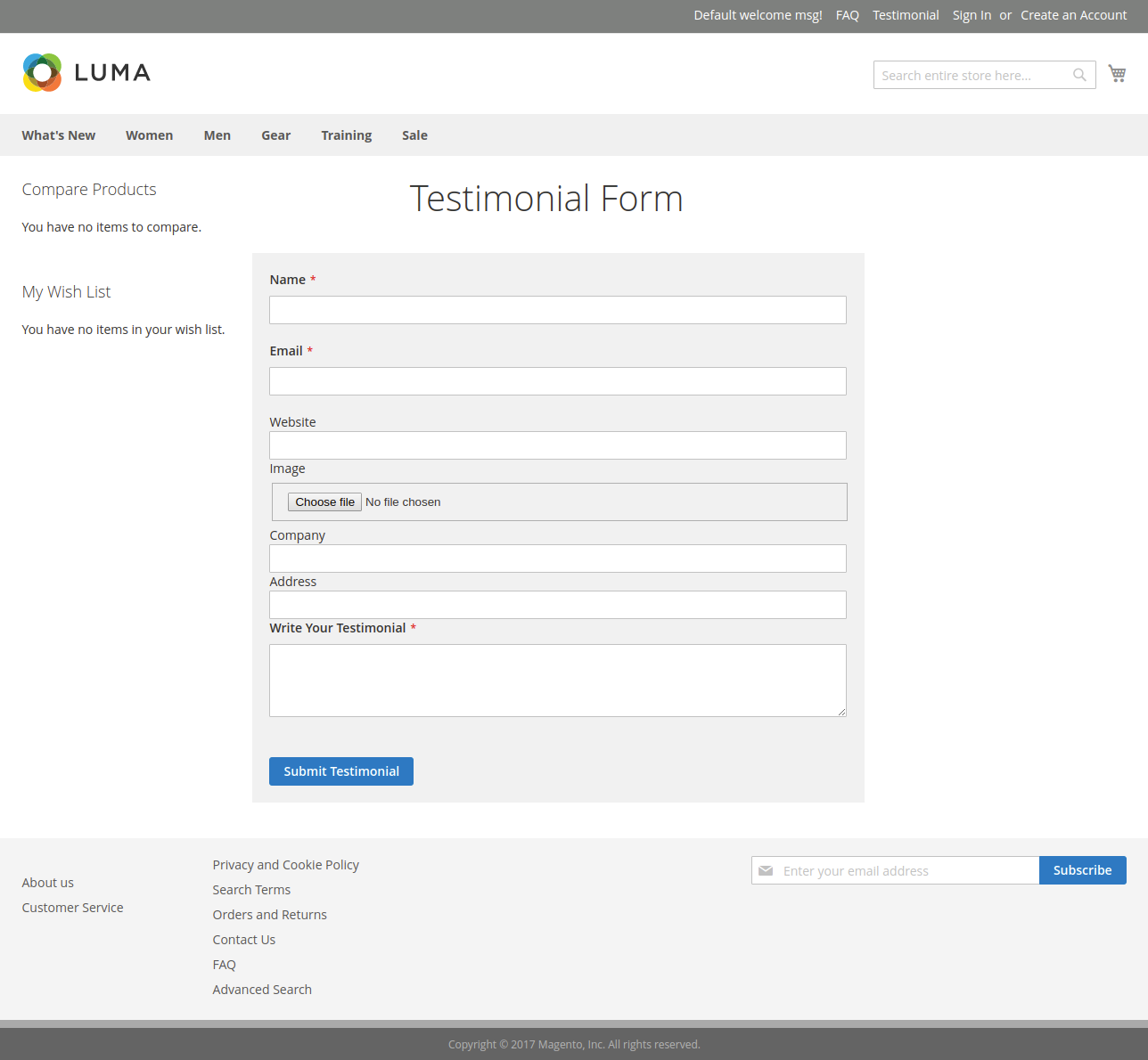 Testimonial form