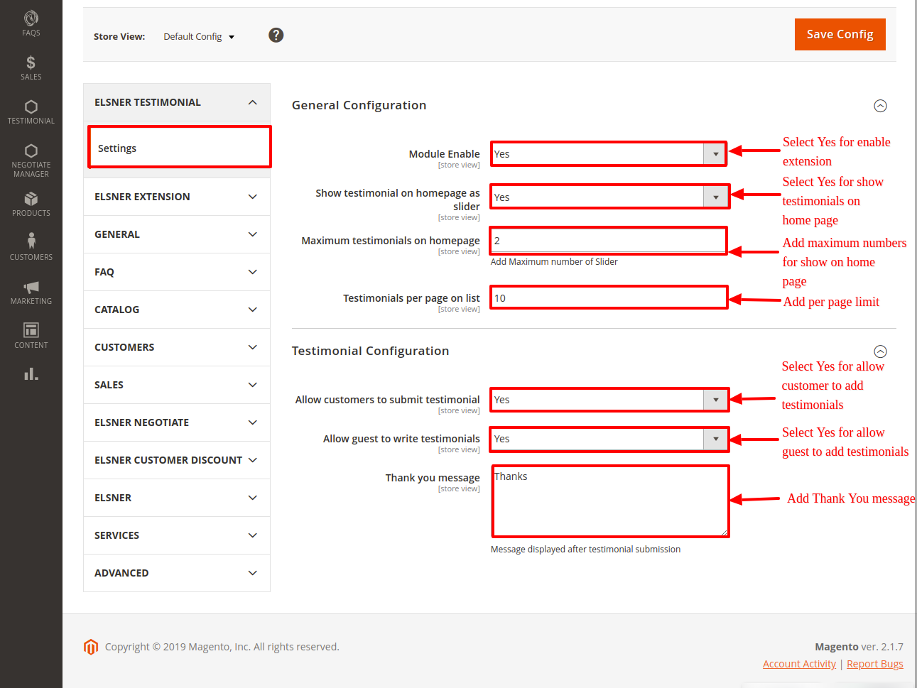 Testimonial - Change Testimonial Config