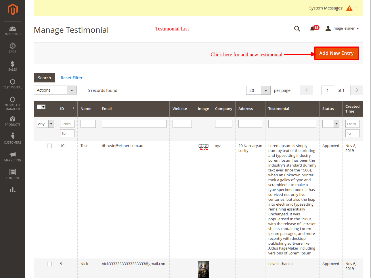 Enhance your store credibility by using Elsner’s Newly added Customer Testimonial Template For Magento 2 extension. You can monitor customer's review and testimonial easily on a daily basis with the help from this extension. More sales can be converted for the store with this extension. In this, admins can allow customers and guests to add testimonials.