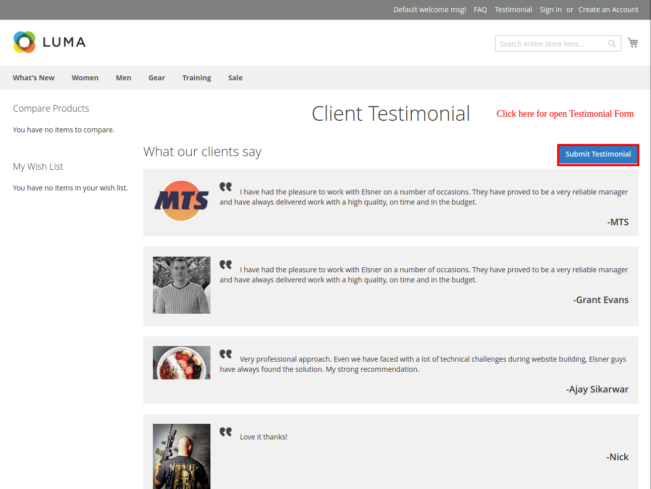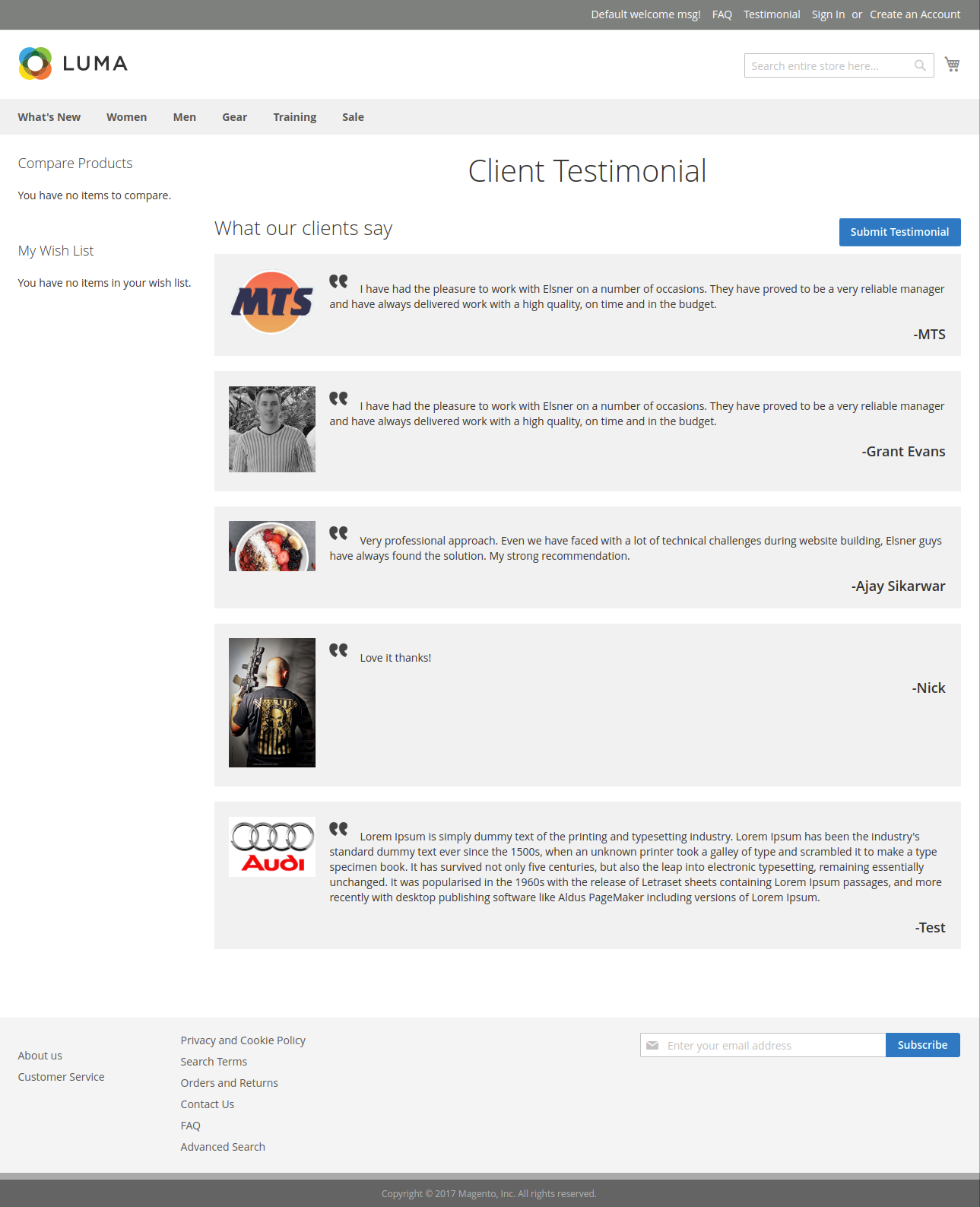 Testimonial Magento 2