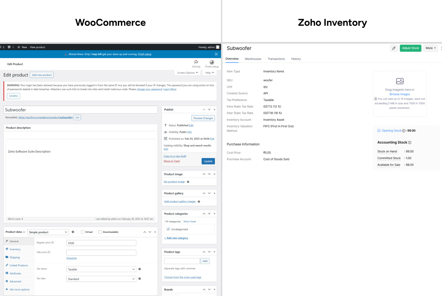 → Two-way product updates between WooCommerce and Zoho Inventory – Changes made in either platform automatically appear in the other one.